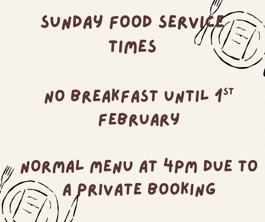 Due to a large private booking, there is no breakfast this week and our main menu will be served from 4pm